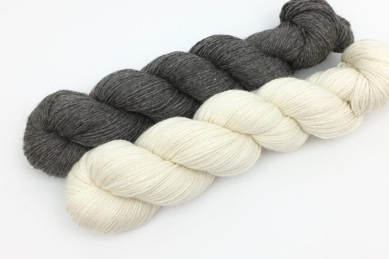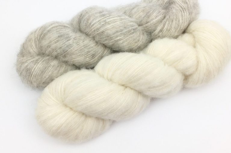 70% Baby Alpaka, 20% Seide, 10% Cashmere, Weiss und Graphitgrau