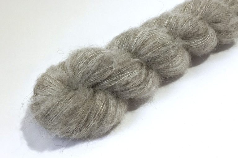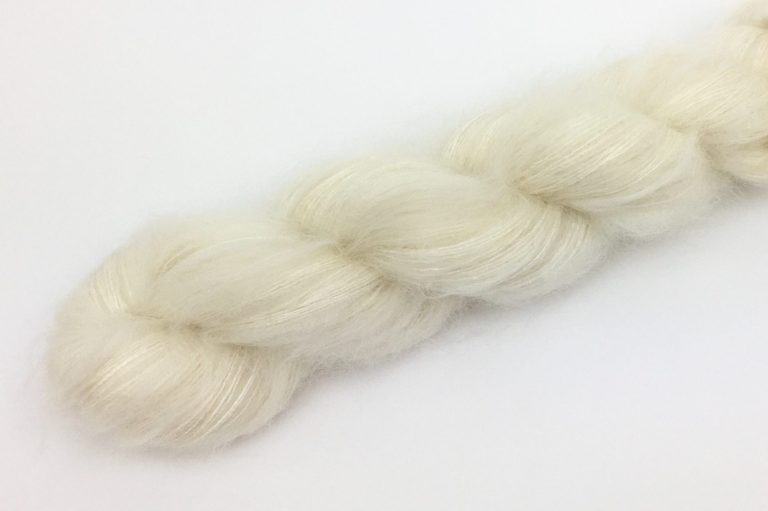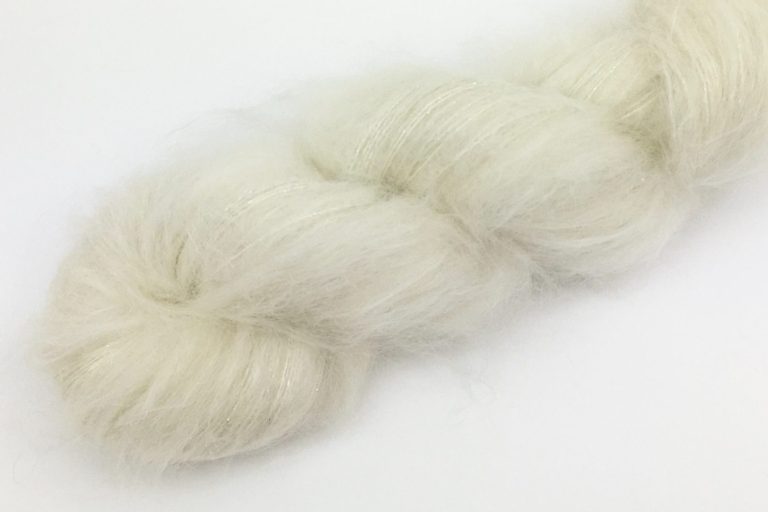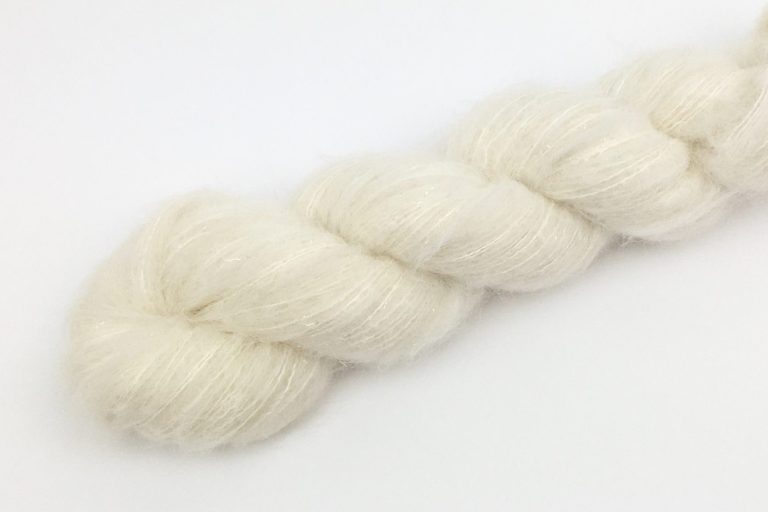 64% Super Kid Mohair, 23% Grade A Maulbeerseide, 10% Sequins, 3% 19.5 Micron Merino